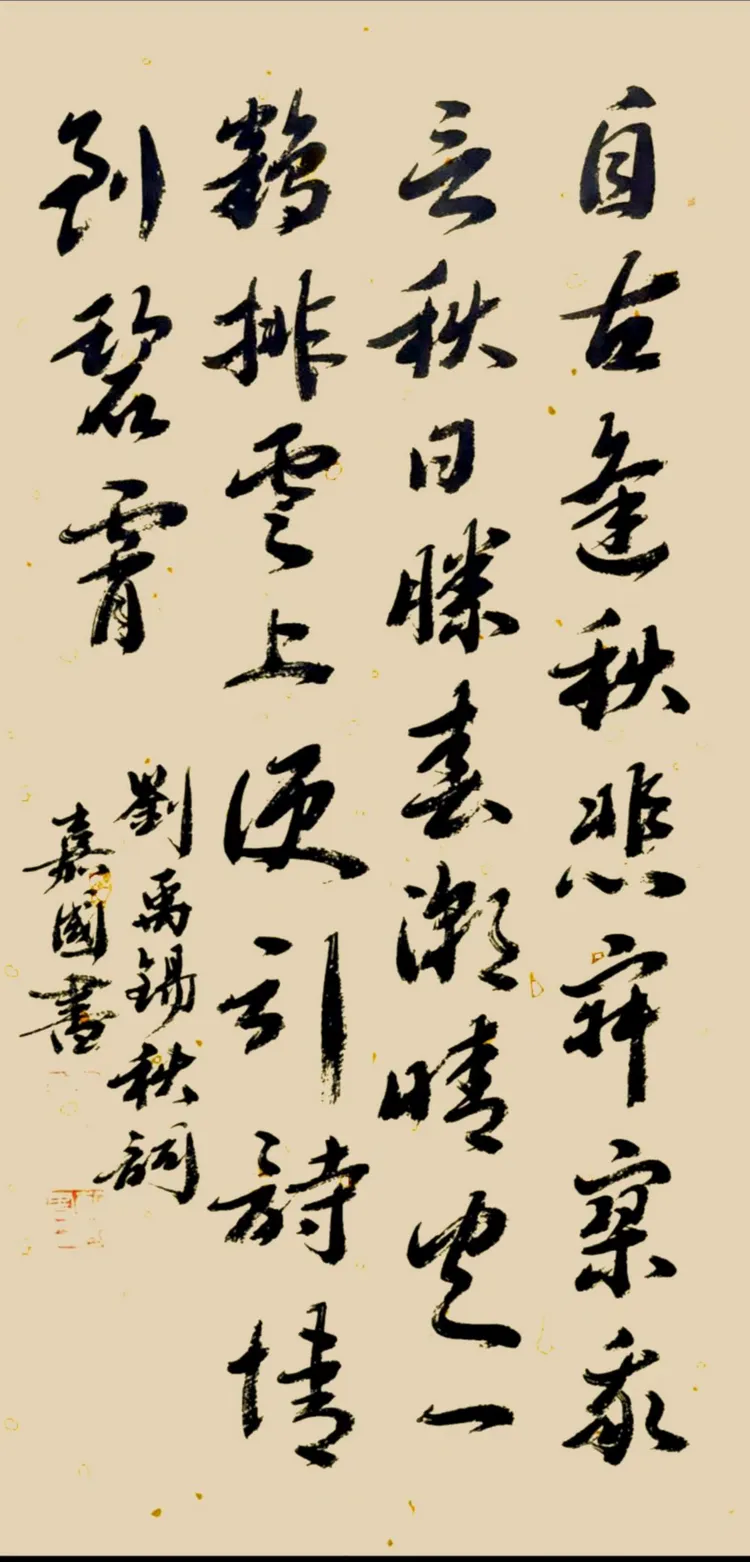 行草书法 唐刘禹锡:自古逢秋悲寂寥,我言秋日胜春朝。晴空一鹤排云上,便引诗情到碧霄