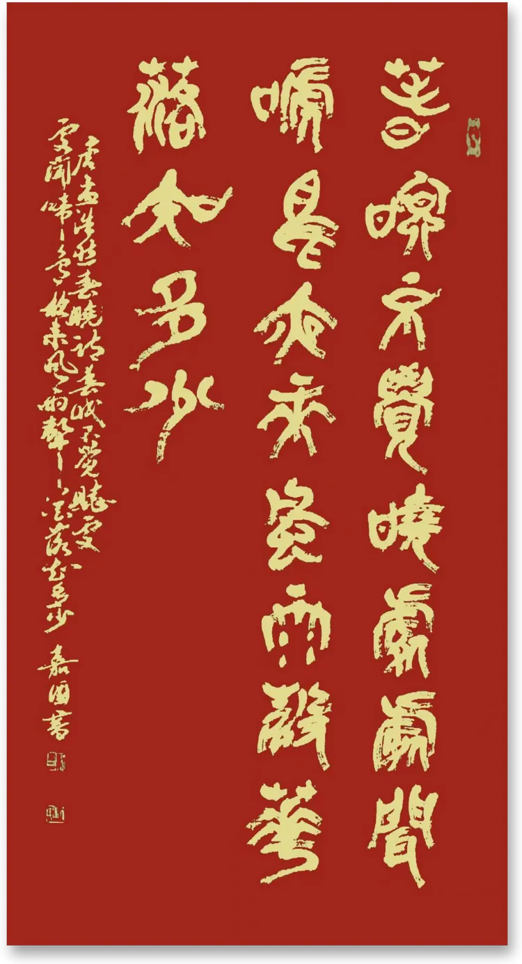 篆书 孟浩然:春眠不觉晓,处处闻啼鸟。夜来风雨声,花落知多少