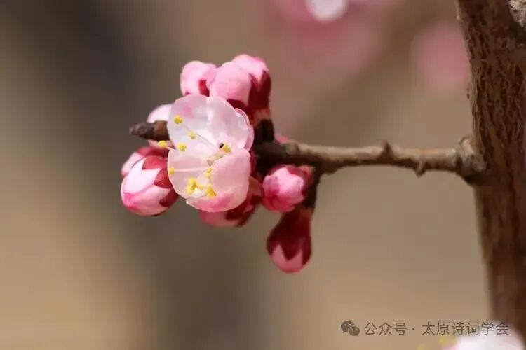 一枝初绽小楼东,次第花开邀暖风。