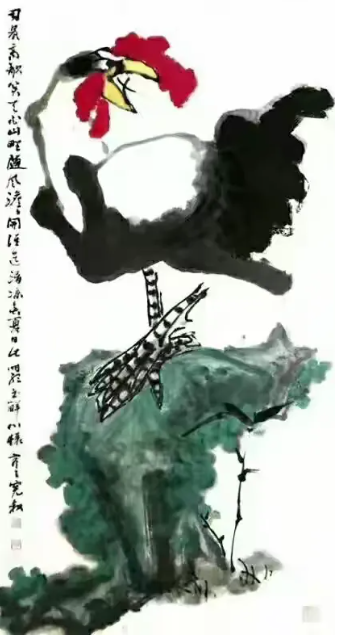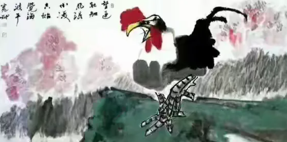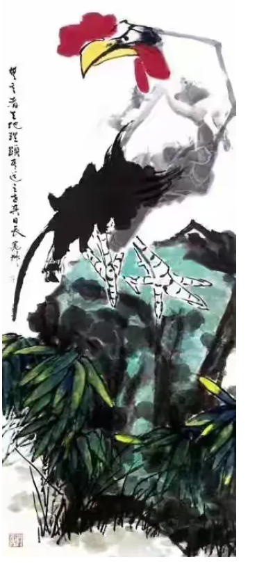 细读其诗,可见诗人对生命尊严的礼赞、对时间秩序的敬畏(“此生只爱司晨唱”)、对信念情操的执着(“唯有东风歌悦耳”),更有对民族气节的隐喻与呼唤(“不惧风云雷雨变”)。那面东而立、昂首长鸣之雄鸡,岂止是农家司晨之畜?实乃东方醒狮之象征,是民族精神不屈的图腾(“一声能教天下白”)。在此意义上,尉明宽之鸡,已超越个体艺术创作,成为一种文化符号,承载着传统美德与现代人格的理想融合。
