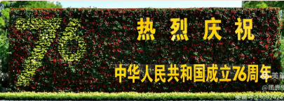 十一飞歌,龙凤舞、神州国庆。红旗飘、欢腾四海,丹霞铺井。金鼓声声欢曲畅,凯歌阵阵人潮鼎。贺华诞、七十六周年,雄狮醒。