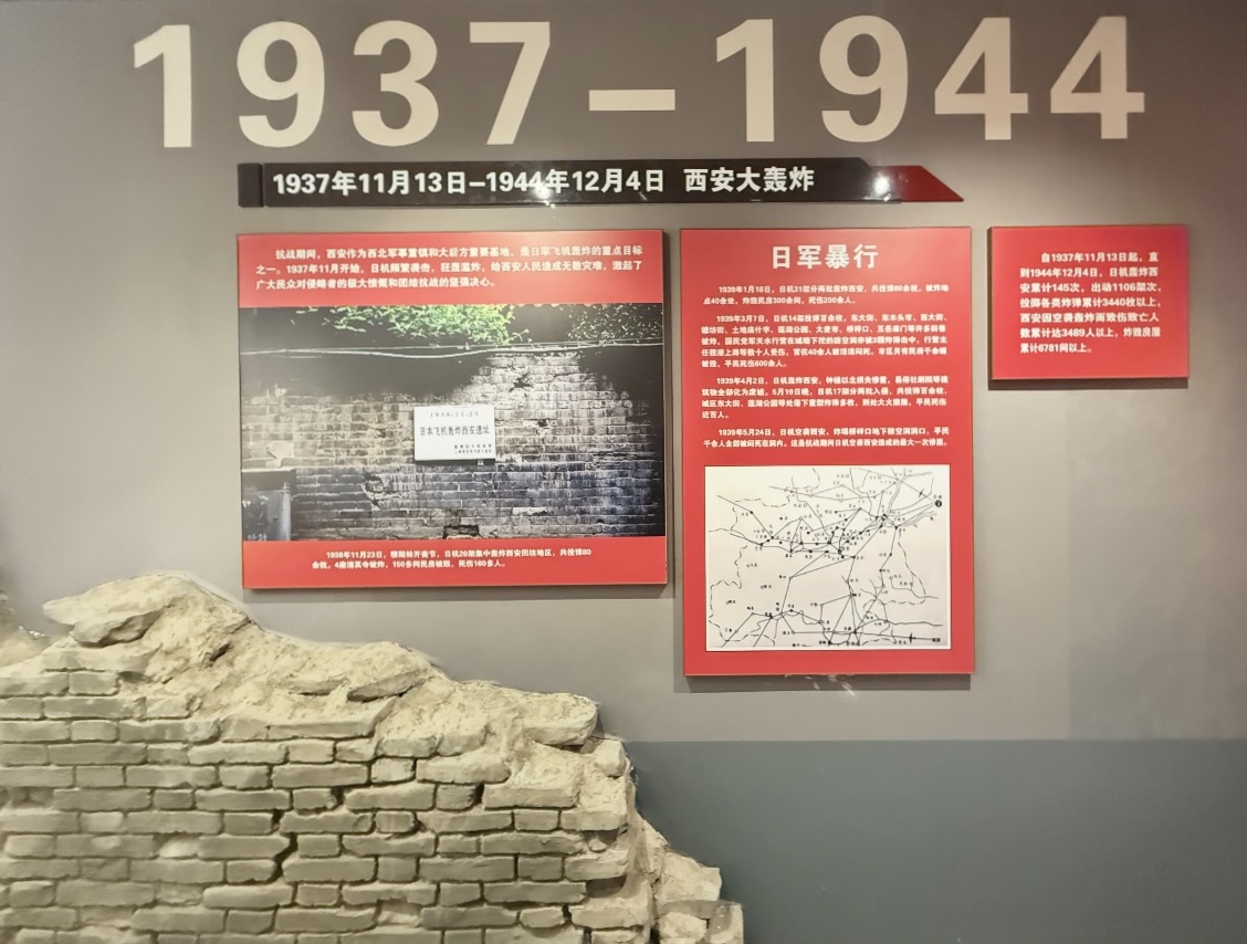 在西安,也有一块这样纪念墙,它就是郭签士巷(光明巷)中段一面弹痕累累的青砖墙,虽已破损不堪,青砖缝缝都被磨的坑凹不平了,但,被日机扫射的机枪眼眼依然存在,它,醒目叙述着那年,那月,那一日,日寇在西安犯下的暴行……