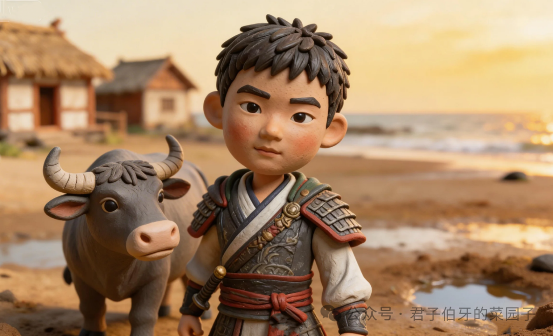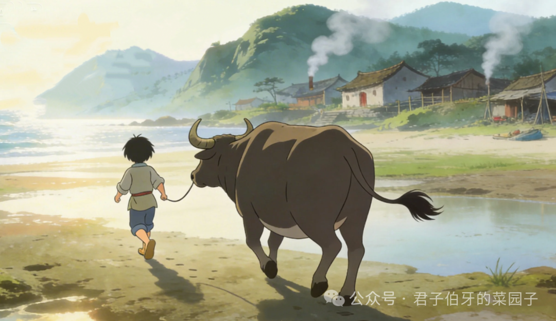 每日天刚蒙蒙亮,晨雾还未散尽,小小勇便牵着老水牛,踏着微凉的露水赶往海边滩涂;待到夕阳染红海面,潮声渐缓,他再牵着老牛慢悠悠归家。日子虽清贫寡淡,无拘无束的山野时光,倒也让小小勇过得自在安然。