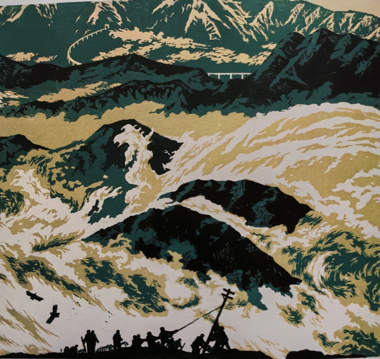 著名画家张衍海版画《风云如潮》
