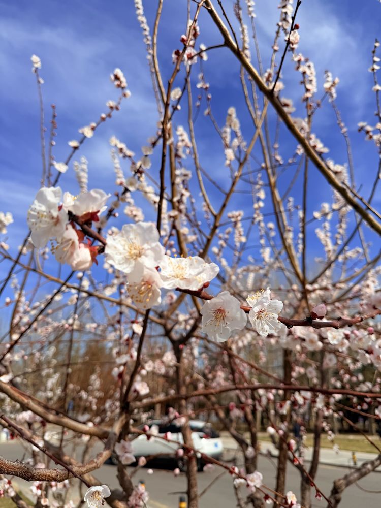 行至山脚,才懂嶂石岩的春,最动人的是那漫山遍野的花事。不必刻意寻花,山路两旁、崖壁缝隙、林间空地,野生的山桃、山杏、连翘肆意绽放,粉的、白的、嫩黄的,一簇簇、一丛丛,从山脚一直蔓延到山腰,如云似霞,将冷峻的丹崖包裹得温柔缱绻。初绽的花瓣薄如蝉翼,带着怯生生的淡粉,盛放的则开得热烈奔放,层层叠叠压满枝头,风一吹,花瓣轻轻摇曳,落英缤纷,空气中满是清甜的花香,深吸一口,连心肺都被这山野清气涤荡得通透。