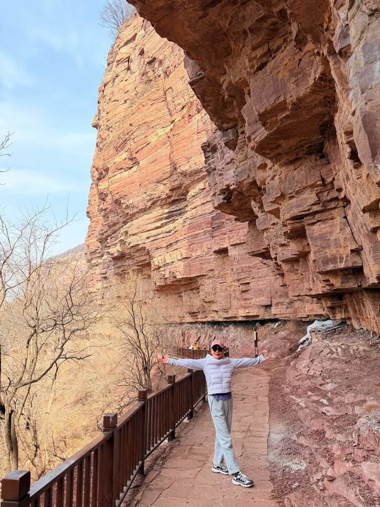 嶂石岩的奇,更藏在那些独有的景致与人文奇观里。漫步至吉尼斯认证的天然回音壁,对着群山轻唤一声,声音在空旷的崖壁间回荡,悠长婉转,像是与大山的温柔对话,清幽如梦,这是大自然精心铸造的奇观,更是古人寄情山水、抒怀言志的绝佳去处。行至一米崖,窄窄的石径两侧是深谷,微风裹挟着花香拂面而来,脚下是雄奇的山峦,眼前是烂漫的春光,步步惊心,却又步步皆景,每一步都踏出诗意的节奏,也踏过千年岁月留下的痕迹。