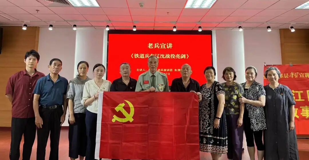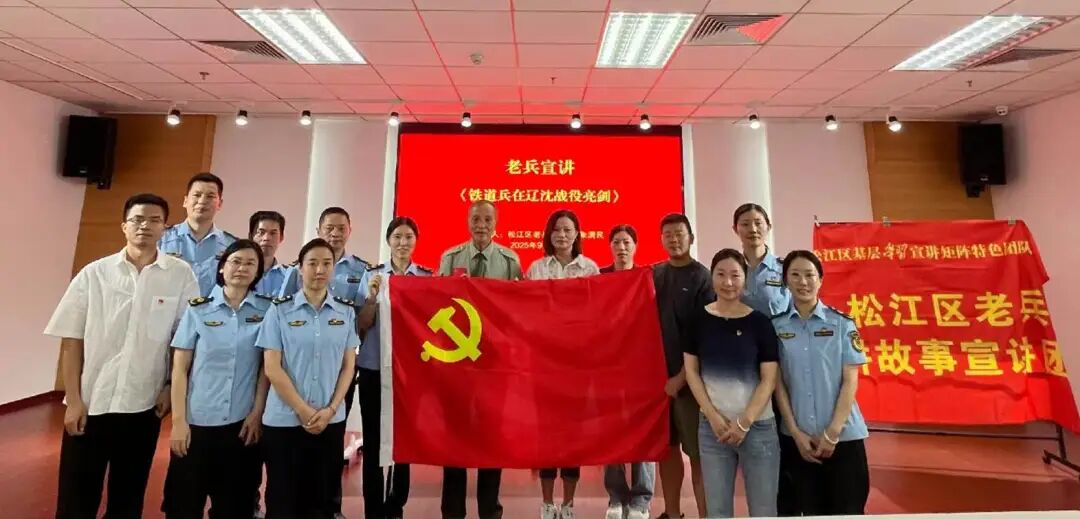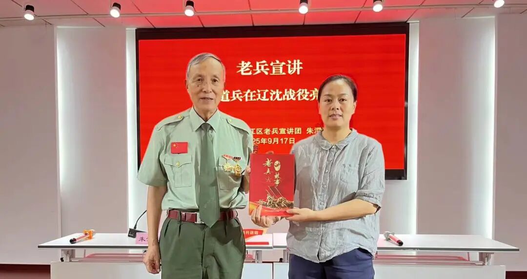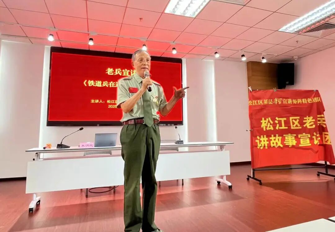 2025年9月17日上午,松江老兵讲故事宣讲团名誉团长朱渭民老师应邀到新桥镇党群服务中心宣讲红色故事《铁道兵在辽沈战役亮剑》,听众来自新桥镇市场监督管理所党支部、集镇第三街区党支部、场西居民区党支部以及部分退役军人和优抚对象代表等32人。