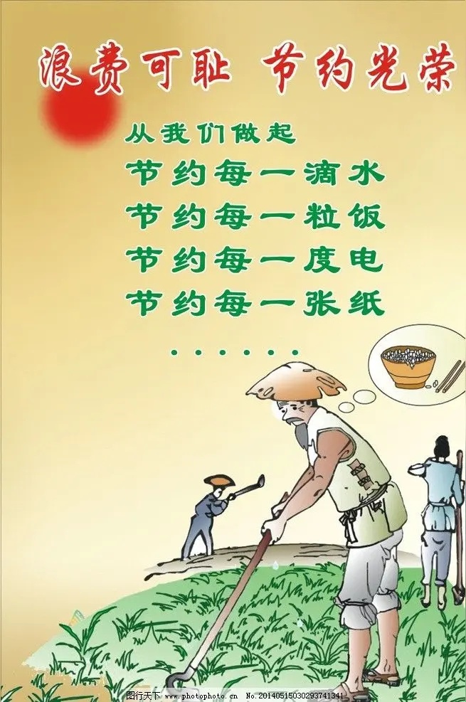勤俭持家,勤俭建国,是中华美德,全民行动起来,节约光荣,浪费可耻!