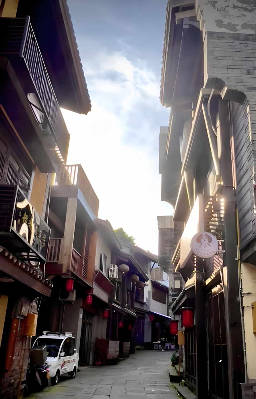 岸上,便是那莲古街了。街是窄窄的一条,两旁的屋子挨得近,檐角几乎要碰着檐角,漏下的一线天光,也是清淡淡的。脚下的青石板路,早被无数鞋底与雨水磨去了棱角,润润的,泛着一种幽暗的、类似旧玉的光。石缝里的青苔肥厚而湿润,茸茸地连成一片,像是大地自己绣出的、最沉默的绿锦。这绿意顺着石阶,一级一级,引着你往深处去,路的尽头,便是一座古旧的戏台。