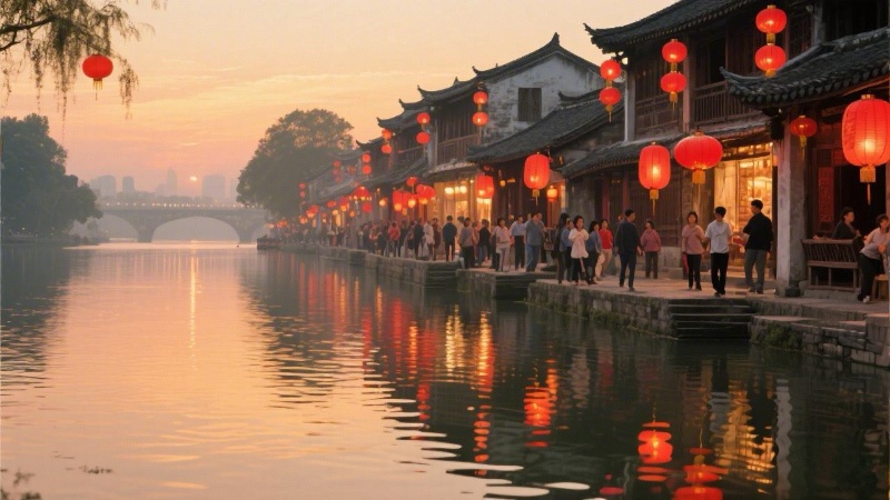 白日里在高楼的夹缝中穿梭,总显得急促,水色被玻璃幕墙反射得有些晃眼。可一挨近那唤作“那莲”的老街口,它便蓦地宽了心,放慢了步子。水波一层层漾开,不是推进,倒像是舒展开来的绸子边儿,软软地舔着生了青苔的旧石阶。水声也换了调子,不再是哗哗的喧响,成了汩汩的、近乎耳语的潺湲,仿佛在应和着岸上某种更古老的节奏。