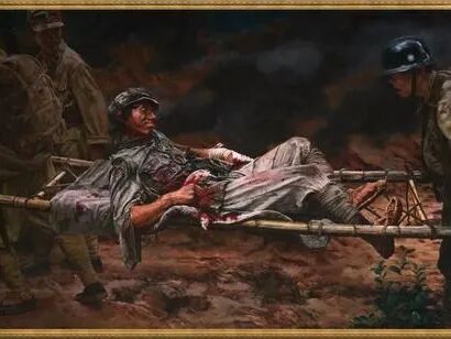 突围那天,一颗子弹击中了他的腹部。他踉跄着扶住树干,肠子从伤口里涌出来,混着血,挂在腹外。冷风一吹,疼得他浑身发抖,额头的汗像雨一样往下掉。他咬着牙,把肠子塞回去,用布条一圈一圈缠住,布条瞬间被血浸透。