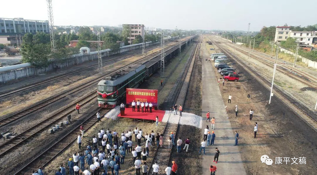 坪田站实际铺轨一天也没有推迟,还提前一天到2018年10月27日开始。当铺架机高高地吊起几十吨重的钢轨与水泥轨枕紧密结合一起的整齐轨排向前推进,然后稳稳地铺落在坪田站平整的路基之上,这才显现出蒙华铁路完整的全貌来,坪田站也顿时有了生龙活虎般的灵气,只待钢铁重载巨龙的到来。