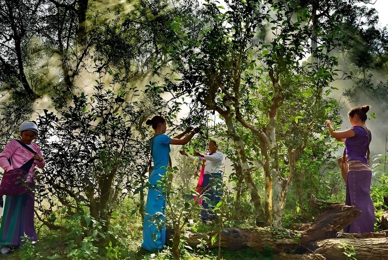 采茶季,是景迈山最盛大的生命礼赞。晨星未隐,头戴尖顶篾笠、肩挎藤编茶篓的茶农已隐入古茶林幽深处。他们恪守“采顶留侧,护芽养树”的古训,指尖于古树虬枝间灵蝶般翻飞,只撷取晨露未晞的一芽二叶。动作轻缓如抚触婴肤,是对古树生命的至高敬畏,亦是对自然恩赐的无声叩谢。茶树下,偶见散落的米粒、野花静卧腐叶——那是茶农向“茶祖”奉上的最朴素心香。茶,是生计的依托,更是信仰的具象。它串联起家家户户灶膛的火种,贯穿着婚聘丧葬的仪轨,浸润着婴孩啼哭、老者絮语的每一个晨昏。茶魂,在采茶人皴裂的指尖、饮茶人温热的唇齿、祭茶人虔诚的心腔间流转不息,化为一条无形却坚韧的纽带,将散落的血脉、消逝的传统牢牢系于苍山翠谷之间。