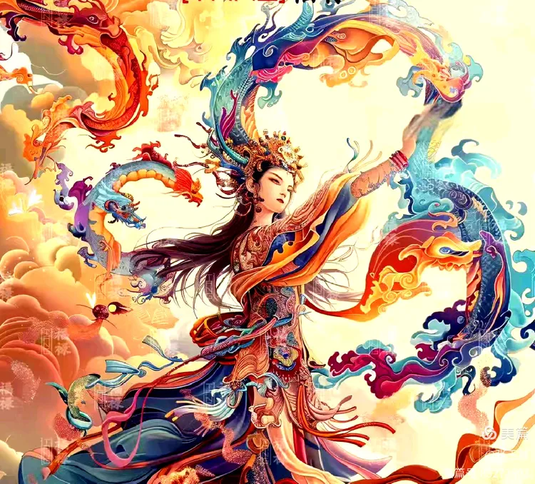 这典故里,还藏着道家“阴阳调和”的道理。古人看天地,总爱分“阴”与“阳”:天是阳,地是阴;太阳是阳,月亮是阴;连云雨也不例外——轻盈的云是阳,湿润的雨是阴。云雨相遇,就是天地间的“阴阳交合”,就像春天里,阳光(阳)和雨水(阴)一起滋润大地,草木才能发芽、庄稼才能生长,这便是“风调雨顺”。古人觉得,人间的男女欢合,也像天地间的云雨相遇,是“阴阳平衡”的体现。就像一对夫妻和睦相处,家里就会安稳;千千万万个家庭都和睦,国家自然就太平,这便是“国泰民安”。而巫山神女本是炎帝的女儿瑶姬,传说她未出嫁就去世了,魂魄留在巫山,化作神女。她能“旦为云、暮为雨”,这云雨的能力,便成了生命力的象征——就像母亲的乳汁能养育孩子,瑶姬的云雨能滋润巫山的草木,也暗喻着她能为人间带来生机。