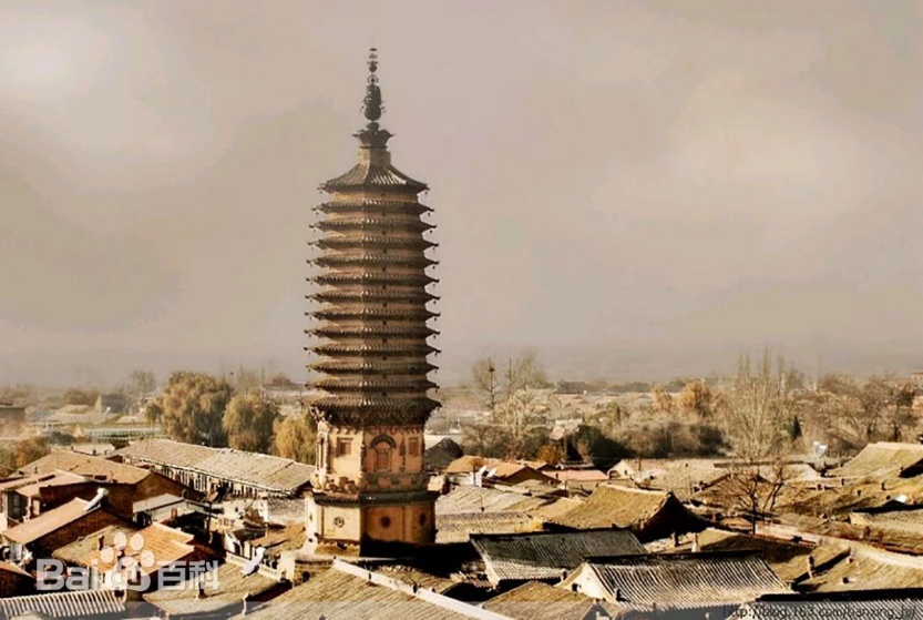 玉皇阁又称“靖边楼”,建于明洪武十年(1377年),座落在古城北门位置的城墙上,具有防御和宗教功能。 (见下图)