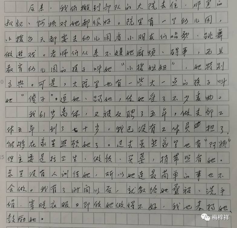 我61岁离休,又被返聘了五年,做支部工作五年,到了七十岁,我已没有工作担当了,能够在家里照顾她了。过去虽然家里也有“阿姨”,但主要是搞卫生、做饭、买菜,捎带着照看她。家里没有人训练她,所以她连最简单的事也不会做。我有了时间以后,就教她叠被子、洗手绢、穿脱衣服。即使她做的不好,我也表扬她、鼓励她。