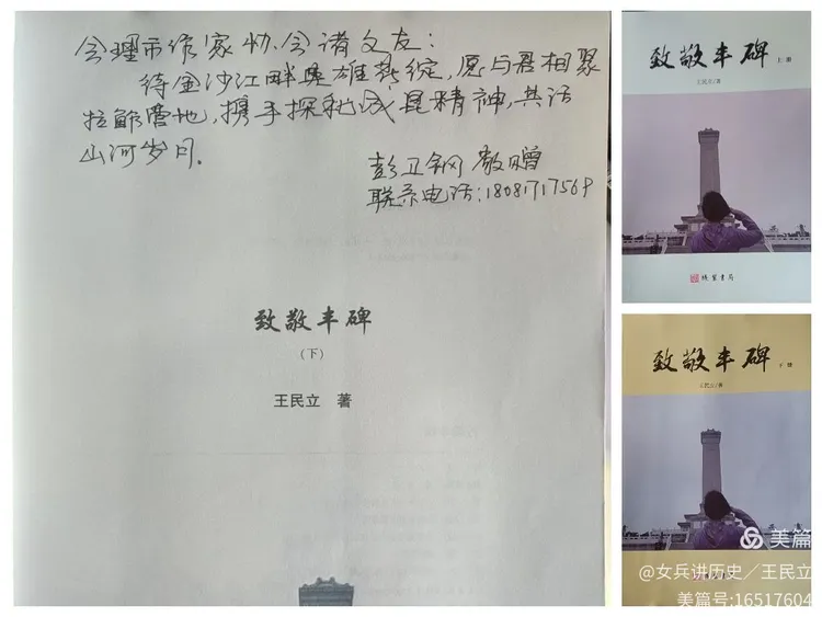 佬九老师赠送作协,铁道兵女作家王民立老师出版的书籍《致敬丰碑》