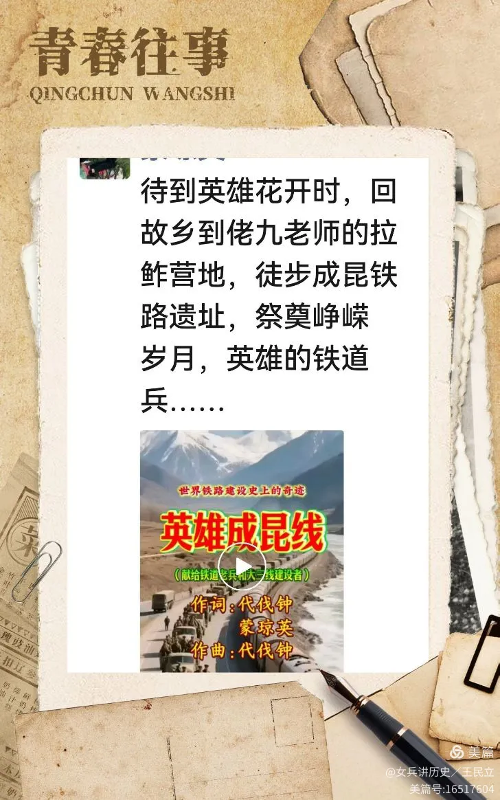 这就是代伐钟、蒙琼英作词,深受铁道兵战友喜爱的新歌曲《英雄成昆线》。