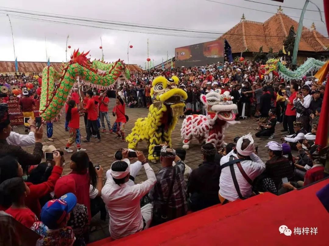 哈,中国的红狮子、金色的狮子,在印尼变成黑狮子?这是怎么回事呢?中国是黄种人,印尼是热带,肤色棕黑,中国文化融入当地的文化,既继承又发展,变异啦!过年了,戏说几句开心话。