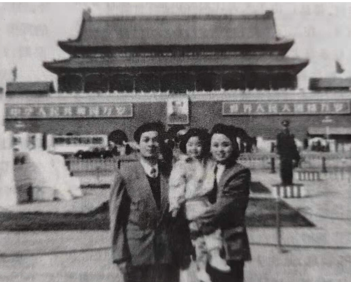 这是蒙标成生前在天安门广场和妻子安银花及女儿蒙晓丹