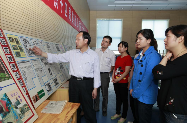 李佩山(左)向中铁十四局集团部分宣传骨干