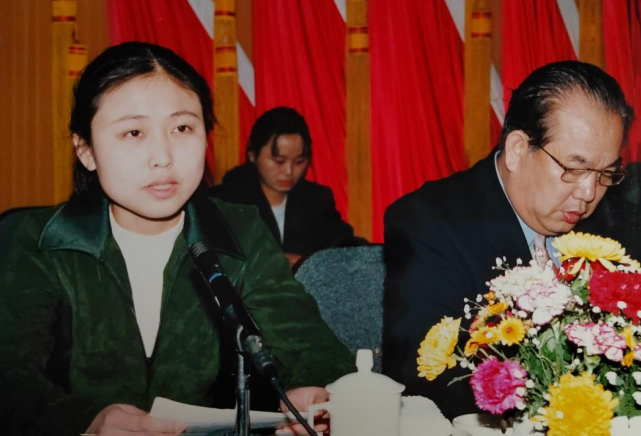 在蒙标成荣誉称号命名大会上,时为他工作继任者的姜莉报告