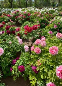 漫步在西宁市文化公园,只见一株株牡丹亭亭玉立,花团锦簇。它们没有江南花卉的娇柔,却多了几分高原特有的坚韧与豪迈。层层叠叠的花枝沿小径蜿蜒铺开,从浅粉到深红,从素白到嫩黄,一路绵延,一眼望不到尽头。高原的阳光格外透亮,落在硕大的花瓣上,泛着温润柔和的光泽。最引人注目的,是青海特有的“干柴牡丹”,也叫青海牡丹。干柴牡丹是这里的灵魂,瓣底那一抹浓艳的紫,如同河湟历史深处的印记,沉稳而大气。它以其耐寒、耐旱、适应性强的特性,在这片海拔2000多米的高原上扎根生长。那一株株干柴牡丹,在阳光下更显娇艳,花朵硕大,花瓣层层叠叠,在绿叶的衬托下格外动人。它们仿佛在向世人宣告,即使在艰苦的环境中,生命依然可以绽放出最绚烂的光彩。