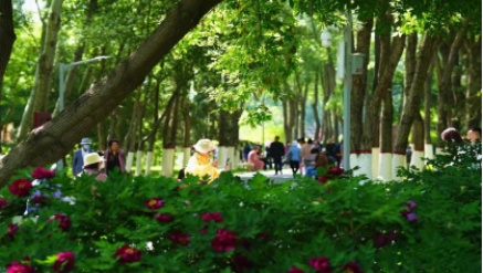 转身步入人民公园,又是另一番牡丹盛景。湖水清清,柳丝依依,牡丹临水而开,更添几分温婉。红牡丹热烈似火,点燃了暮春最后的明媚;白牡丹洁净如雪,映着蓝天,清雅出尘;粉牡丹柔婉如霞,在风里轻轻颤动,似含情不语。游人缓步花间,老人倚花而笑,孩童追着花香奔跑,手机和相机快门声此起彼伏,人与花相映,花与城相融,一派祥和温柔的景象。花香混着草木清气,在湖面轻轻浮动,连时光都仿佛慢了下来。