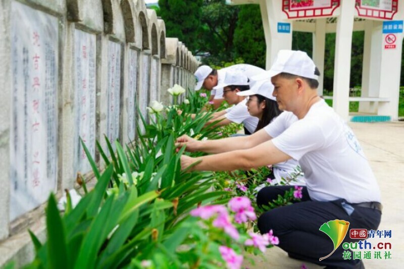 图为团队成员在同德烈士陵园祭奠英烈 中国青年网通讯员 何阳 摄