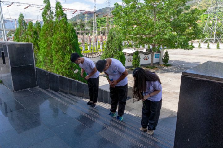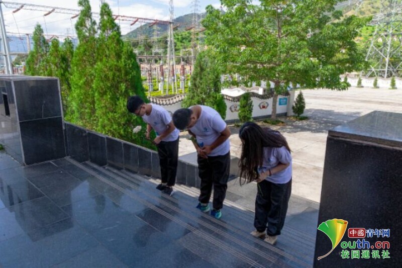 图为团队成员在盐边烈士陵园纪念碑前鞠躬献花中国青年网 通讯员 何阳摄