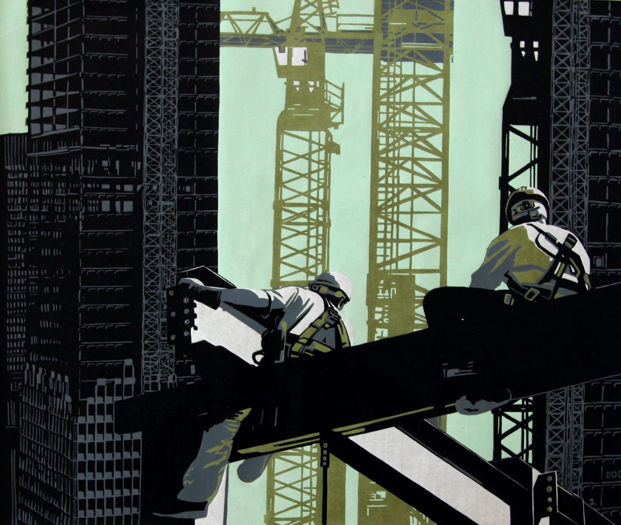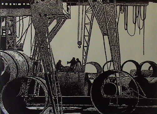 姜琳 黑白木刻《工地》50x60cm
