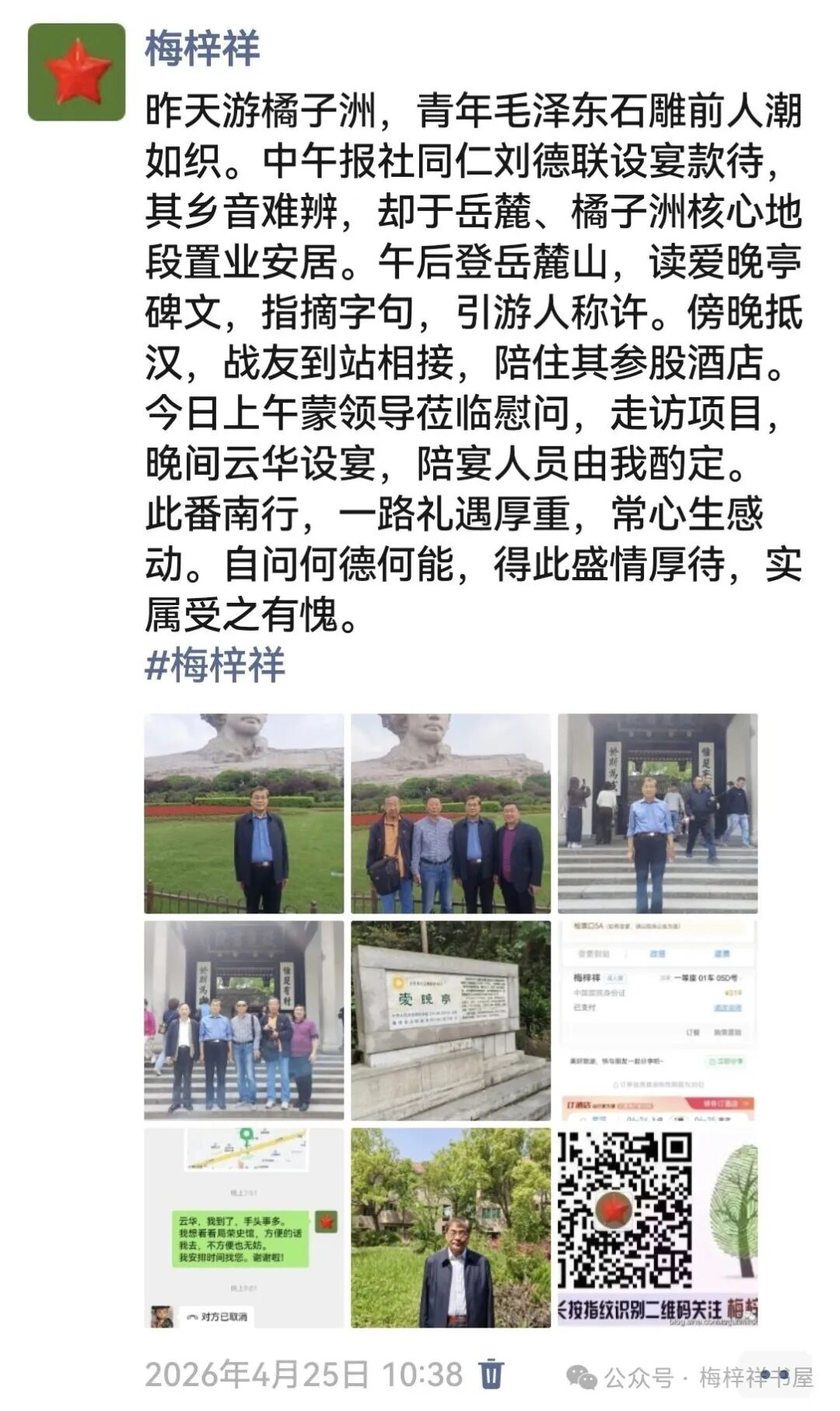 行程期间,我每日在朋友圈分享行踪与照片,现将相关截图附于文后,留存这份珍贵的记忆一一