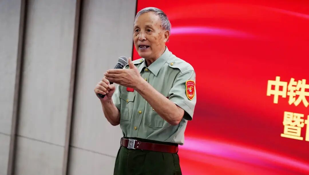 观看结束后,几位老兵和中铁集团各位领导合影留念。