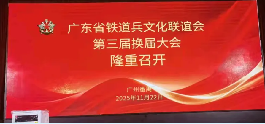 2025年11月22日,广东省铁道兵文化联谊会第三届换届大会在广州南方毅源大酒店隆重举行,中华社会文化发展基金会铁道兵文化公益基金主任姜晋南、副总干事兼书画艺术部部长王戈辉受邀出席大会,与近400名铁道兵战友、军嫂共同见证广东省铁道兵文化联谊会发展的重要节点,共商铁道兵文化传承新路径。