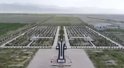 这座陵园安葬着203名为国捐躯的烈士,其中149人是为修建南疆铁路而英勇牺牲的铁道兵。