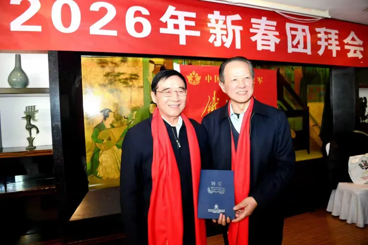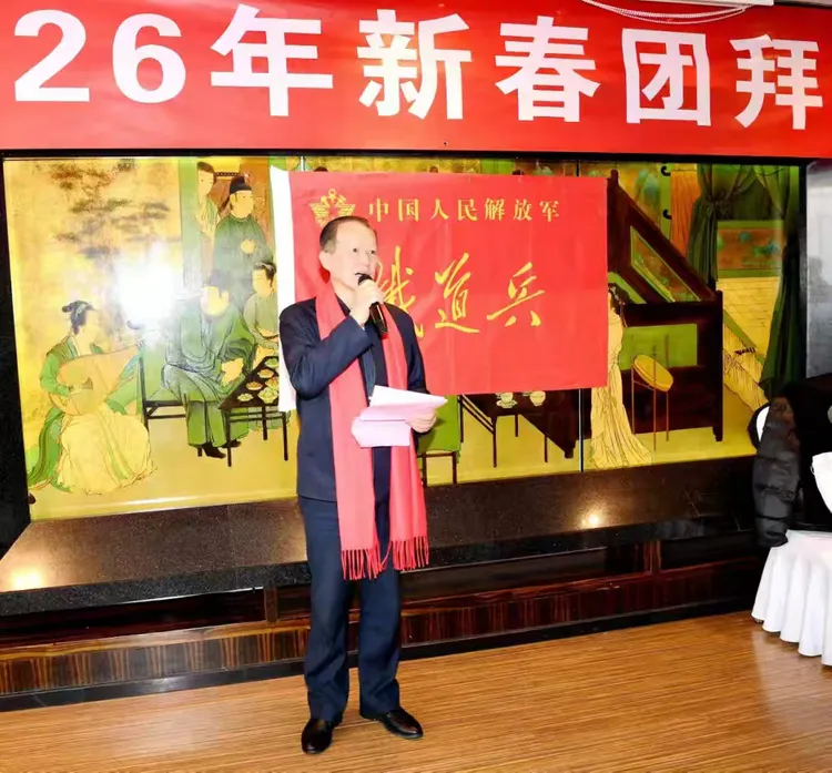 团拜会上,铁道兵文化公益基金主任姜晋南简要汇报了2025年工作情况和2026年的工作打算,并为铁道兵系列影视剧总策划孟广顺颁发了聘书,孟广顺发表了深情感言。